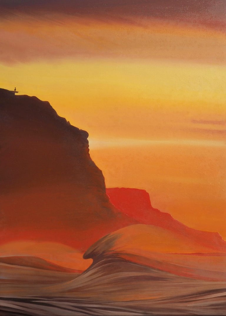 Entre roche et horizon, une vague intérieure. Un paysage suspendu, là où l’émotion rencontre l’océan. 🌊 Technique mixte : acrylique et huile D’après une photographie de Scott Harrison 🙏🏼