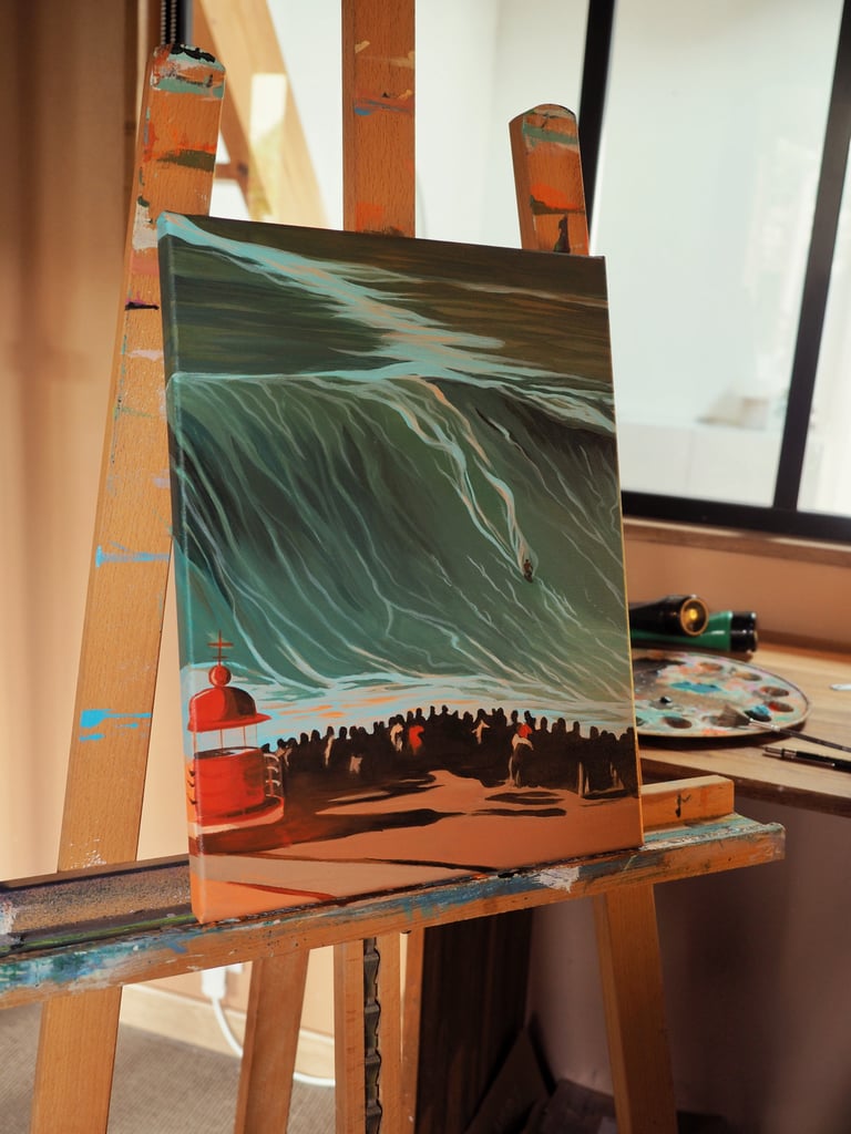 Acrylic painting • 40x30 cm I started from a photo of Nazaré, but I wanted to give it my own touch — changing the original tones to bring out the vibrant blues and warm oranges. I love how these complementary colors balance each other. ;-)